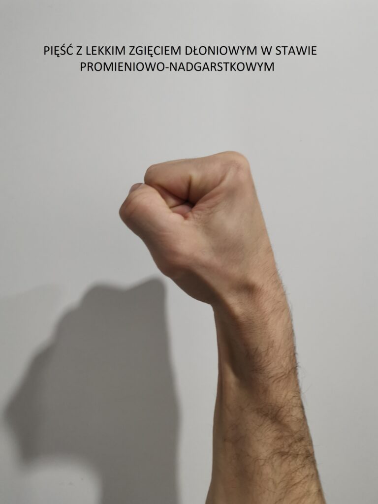 Ułożenie ręki w stawie promieniowo nadgarstkowym warunkuje w dużym stopniu przekazanie mocy uderzenia w przeszkodę którą uderzasz. W tym wpisie przedstawię trzy możliwości ułożenia dłoni podczas uderzania zwrócę uwagę na konsekwencje z ich stosowania. Według praw fizyki: jeżeli będziesz przekazywał tą samą  moc uderzenia, która będzie oddawana przez większy obszar to siła oddziałująca na ciało